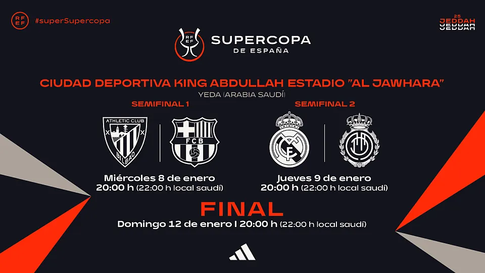 La Supercopa de España 2025 se disputará en Yeda, Arabia Saudita, con la participación del Athletic Club, Real Madrid